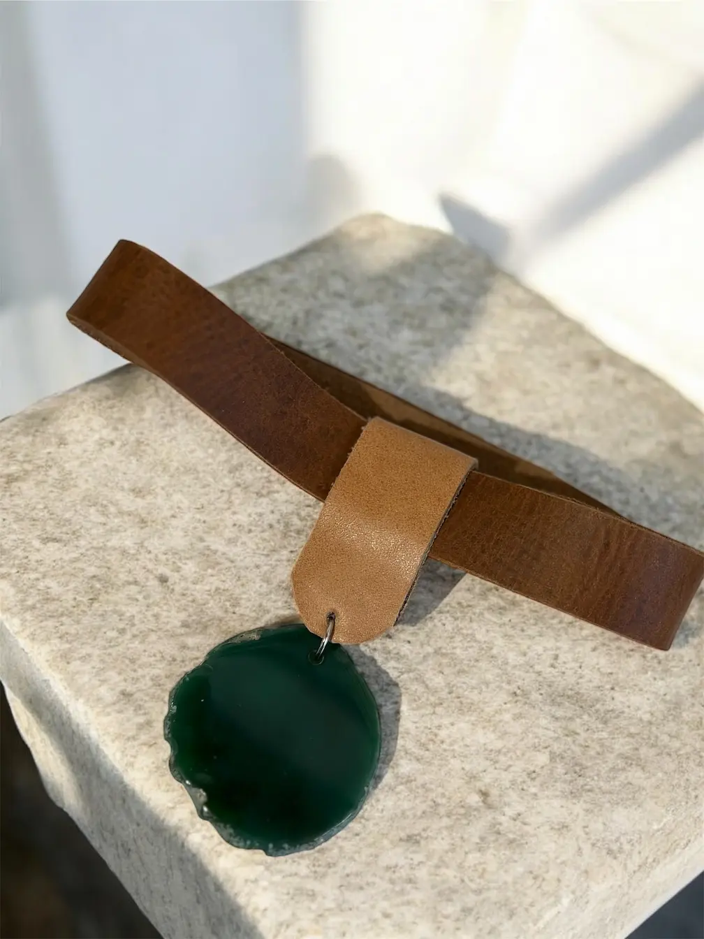 Choker tipo garantilla, con aplique en piedra ágata .Regulable con botones a presión hasta 3 niveles.