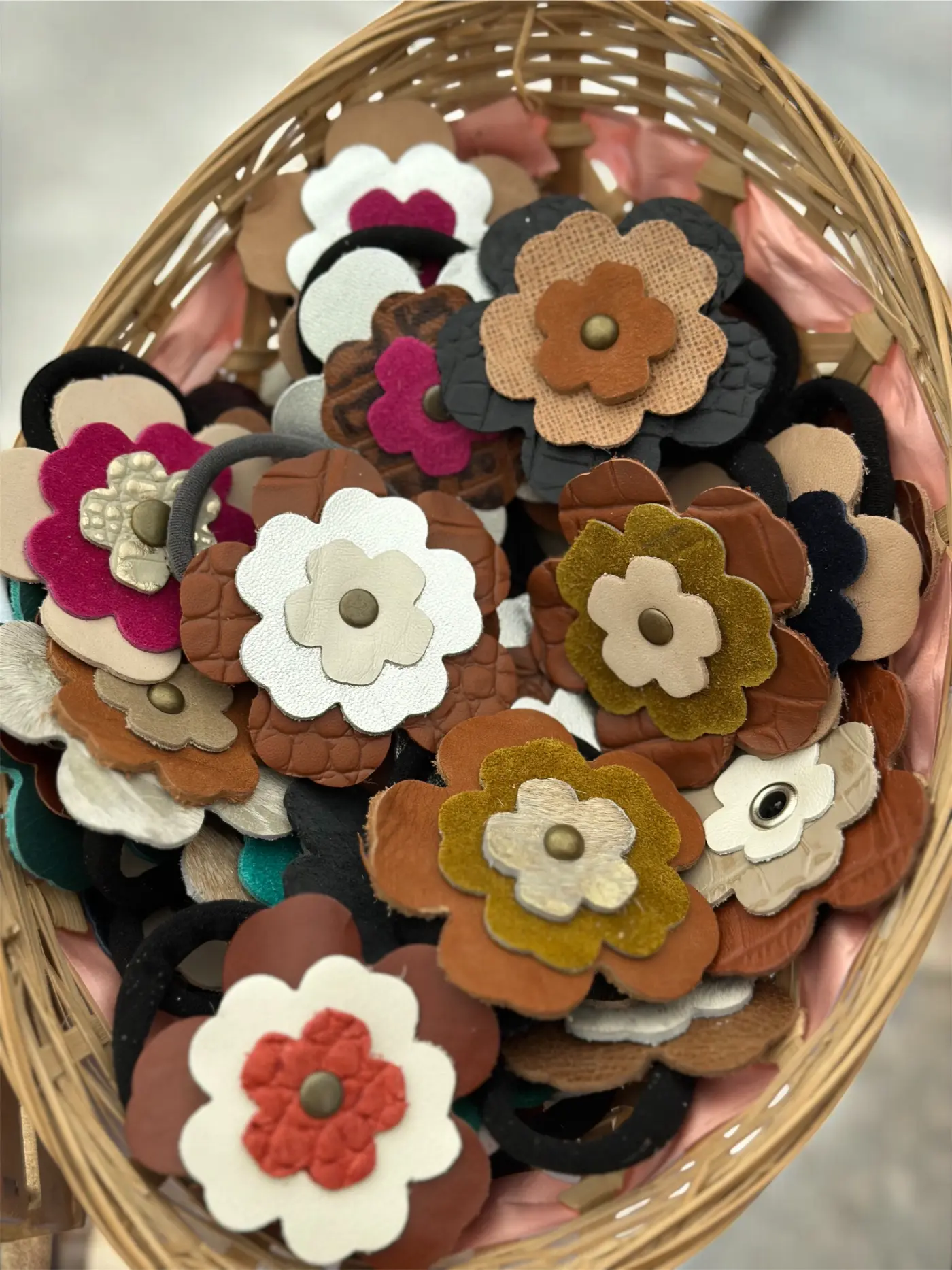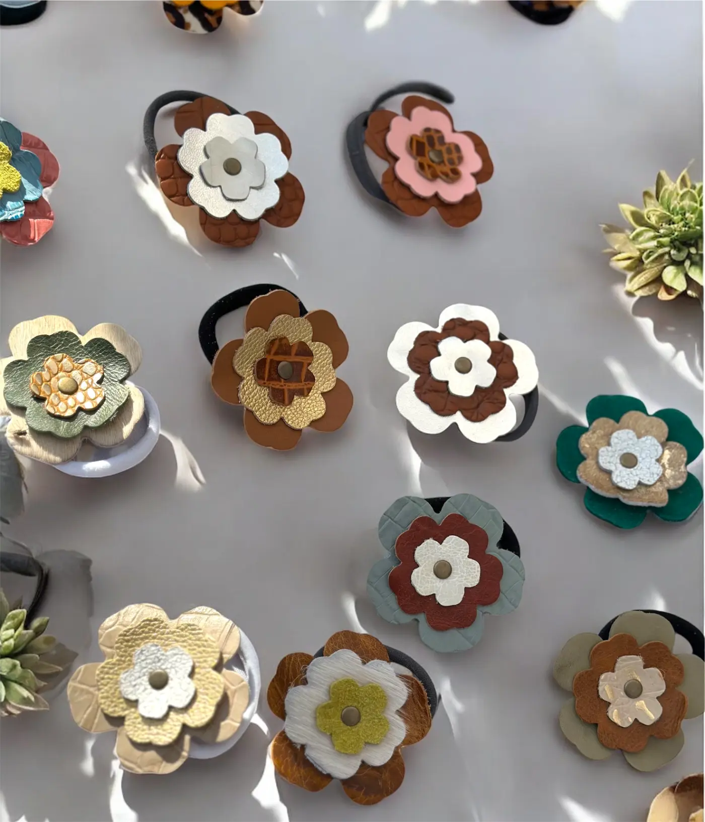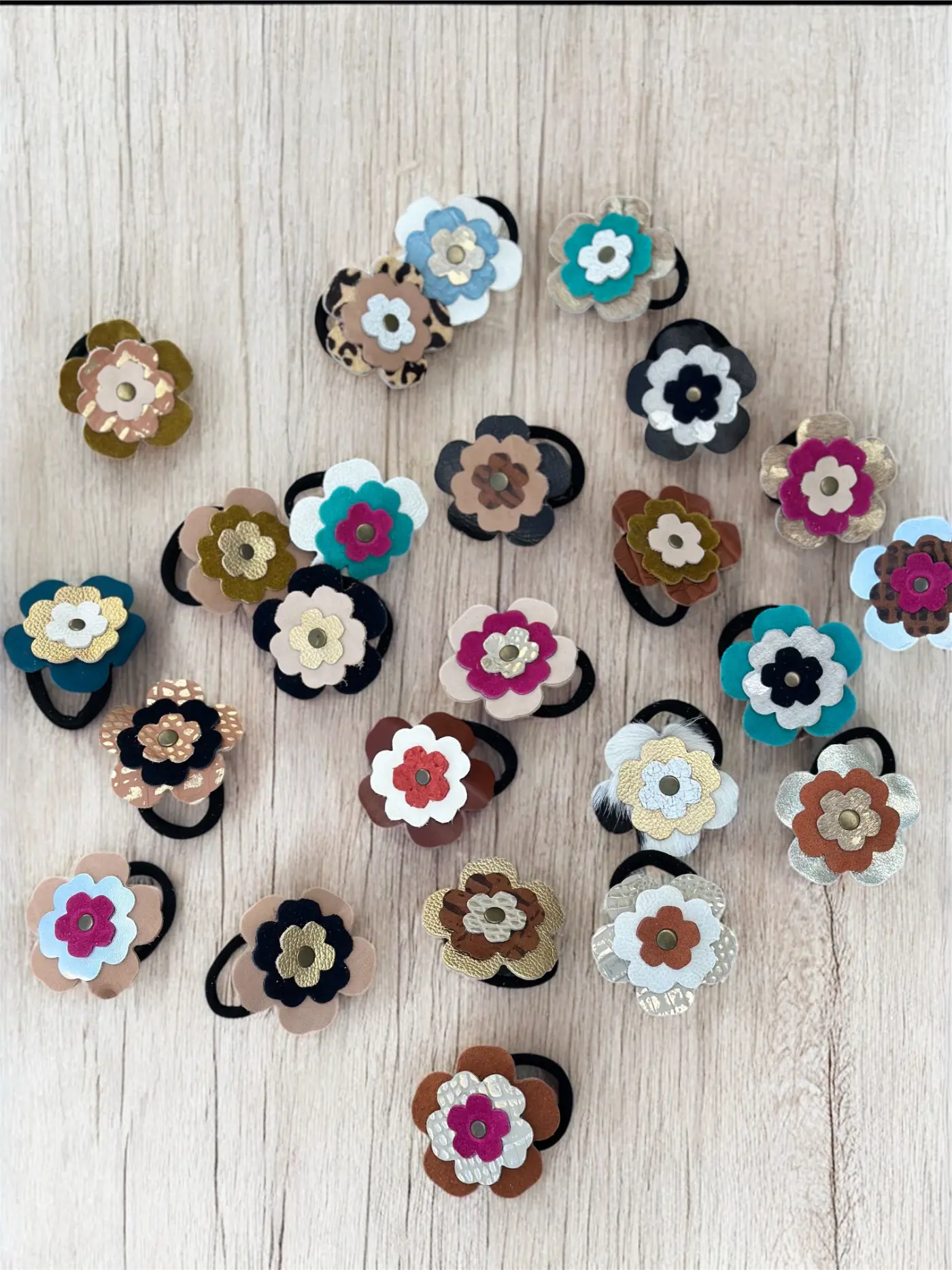 Colero Flor. En cuero. Goma elástica resistente.